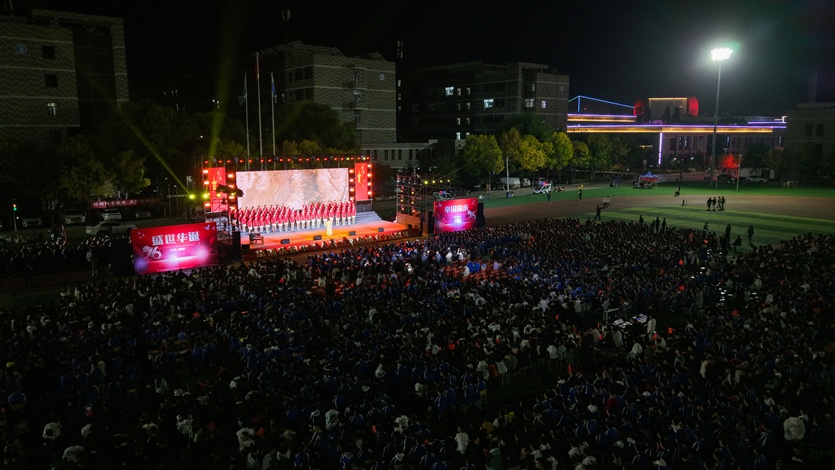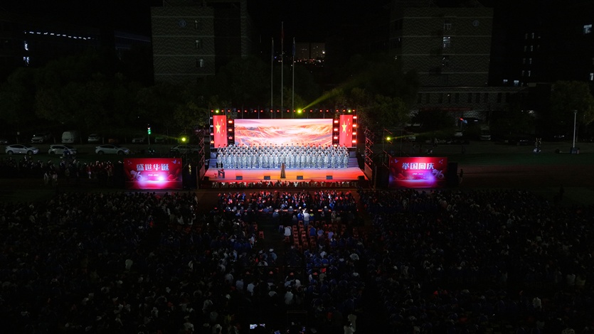 晚19:00,專業(yè)系合唱展演在濱河校區(qū)操場上演。師生們以優(yōu)美的旋律、飽滿的激情詠唱了必選曲目《保衛(wèi)黃河》及自選曲目《團結就是力量》《毛委員和我們在一起》《世界贈予我的》《鋼鐵洪流進行曲》《紅色娘子軍連歌》《當那一天來臨》《祖國頌》等一首首昂揚激越、催人奮進的歌曲,表達了他們對祖國母親的真誠歌頌和美好祝福,唱響了對偉大祖國的無限熱愛,贏得了臺下評委老師和同學們的陣陣掌聲。收尾環(huán)節(jié),六位音樂專業(yè)教師還聯(lián)袂演唱了《我和我的祖國》,歌聲高亢激昂,震撼人心。