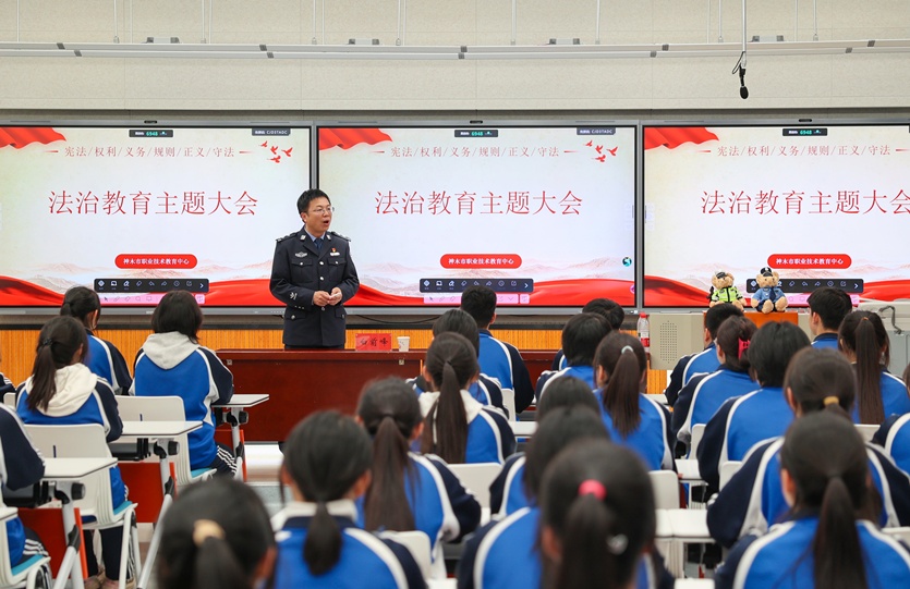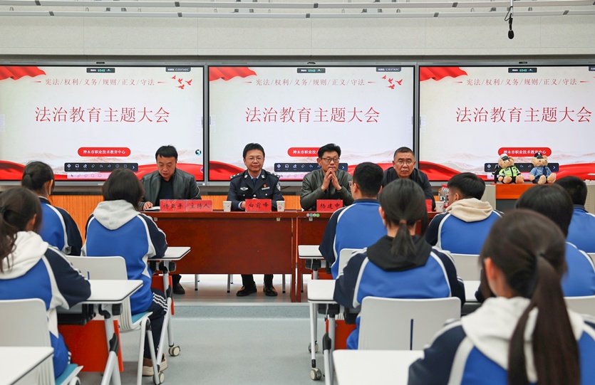 為進(jìn)一步加強(qiáng)學(xué)生法制教育,增強(qiáng)他們的法治觀念和自我保護(hù)意識(shí),引導(dǎo)學(xué)生自覺遵紀(jì)守法,學(xué)會(huì)運(yùn)用法律武器維護(hù)自身合法權(quán)益,營造安全、和諧、文明的校園環(huán)境,11月3日晚,神木市職業(yè)技術(shù)教育中心通過現(xiàn)場直播的形式召開法治教育主題大會(huì)。分管德育工作副校長楊亞平主持教育大會(huì),濱河新區(qū)派出所所長白前峰應(yīng)邀作法治報(bào)告,校黨總支書記張強(qiáng)、校長楊建中分別作了講話,全體2025級(jí)學(xué)生及班主任在本班教室聆聽了講座。